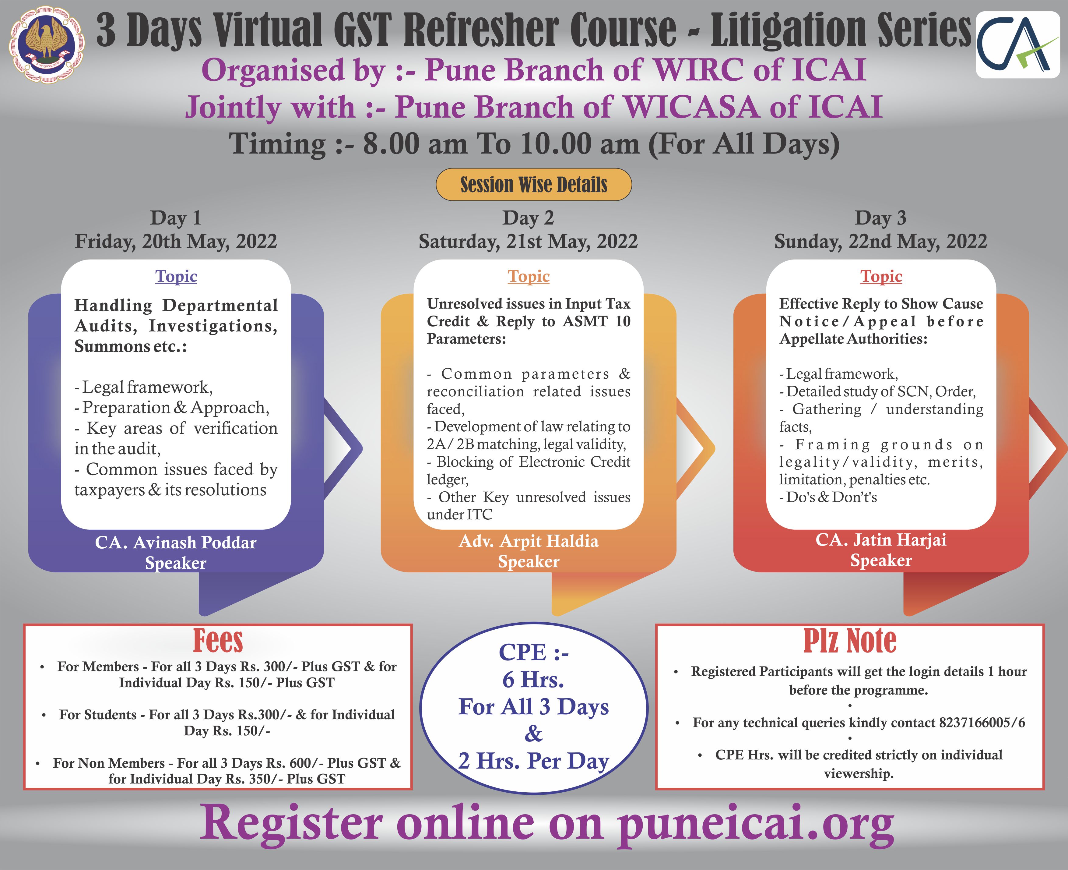 3 Days Virtual GST Refresher Course (Litigation Series) for all 3 days
