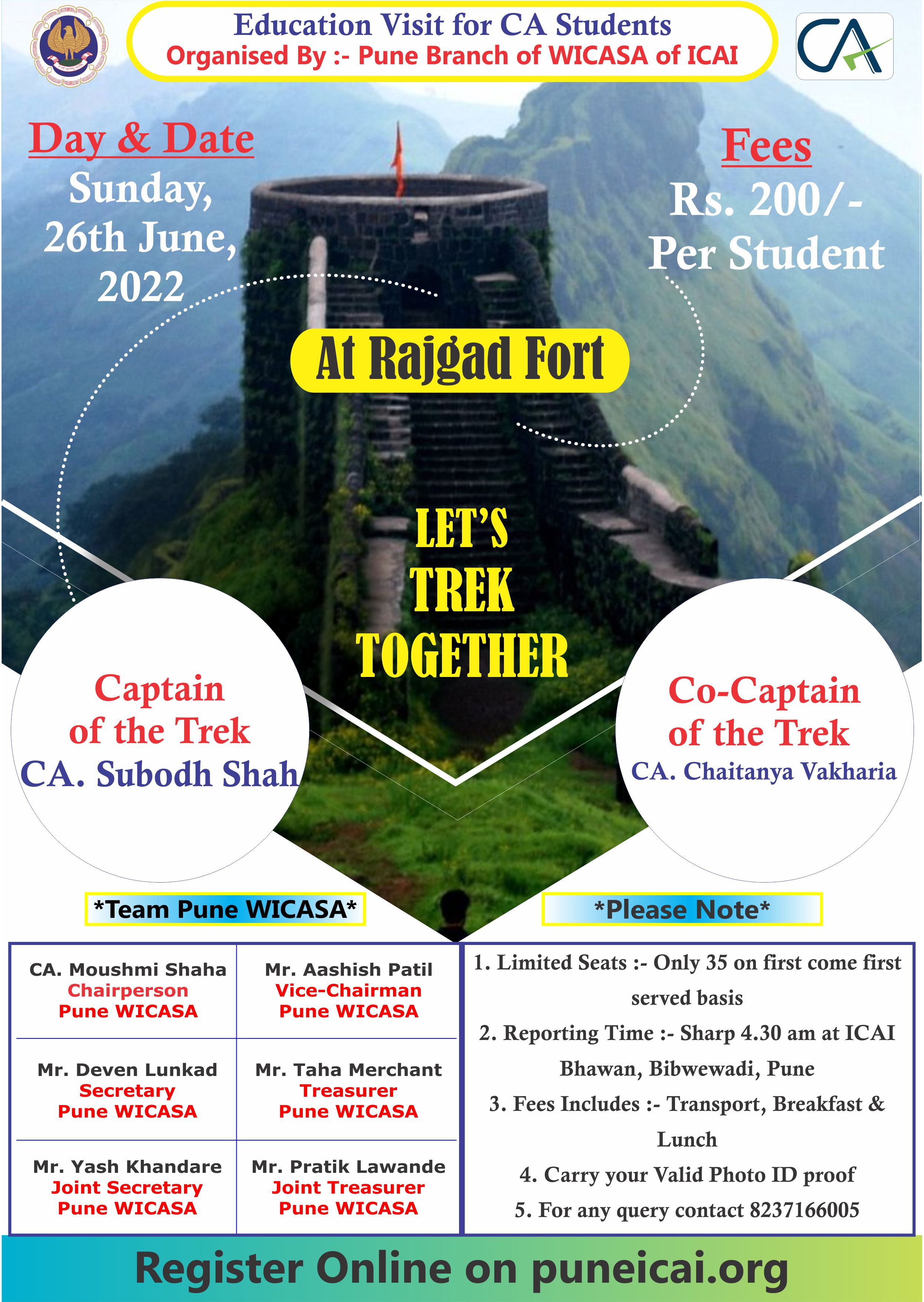 2. Reporting Time :- Sharp 4.30 am at ICAI Bhawan, Bibwewadi, Pune