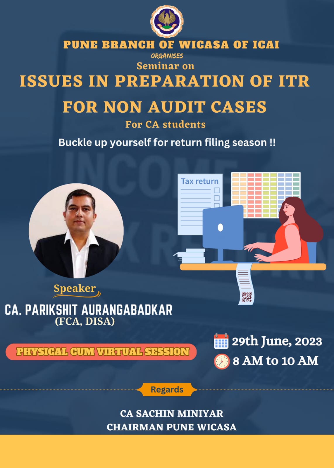 Physical cum Virtual Programme on "Issues in Preparation of ITR for Non Audit Cases" For CA Students