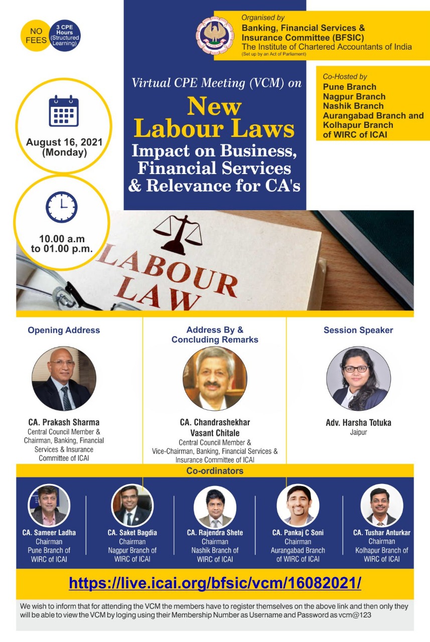 VCM on "New Labour Laws: Impact on Business, Financial Services & Relevance for CAs'"