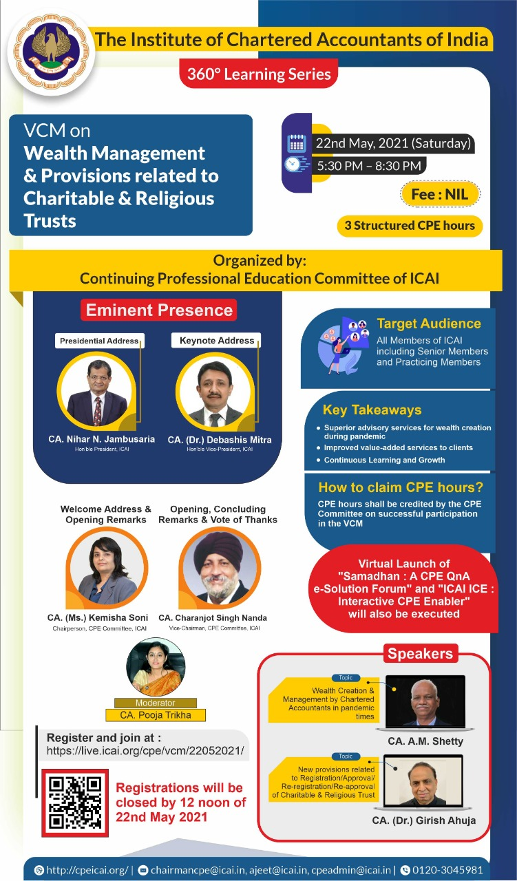 VCM on “Wealth Management and Provisions related to Charitable & Religious Trusts"