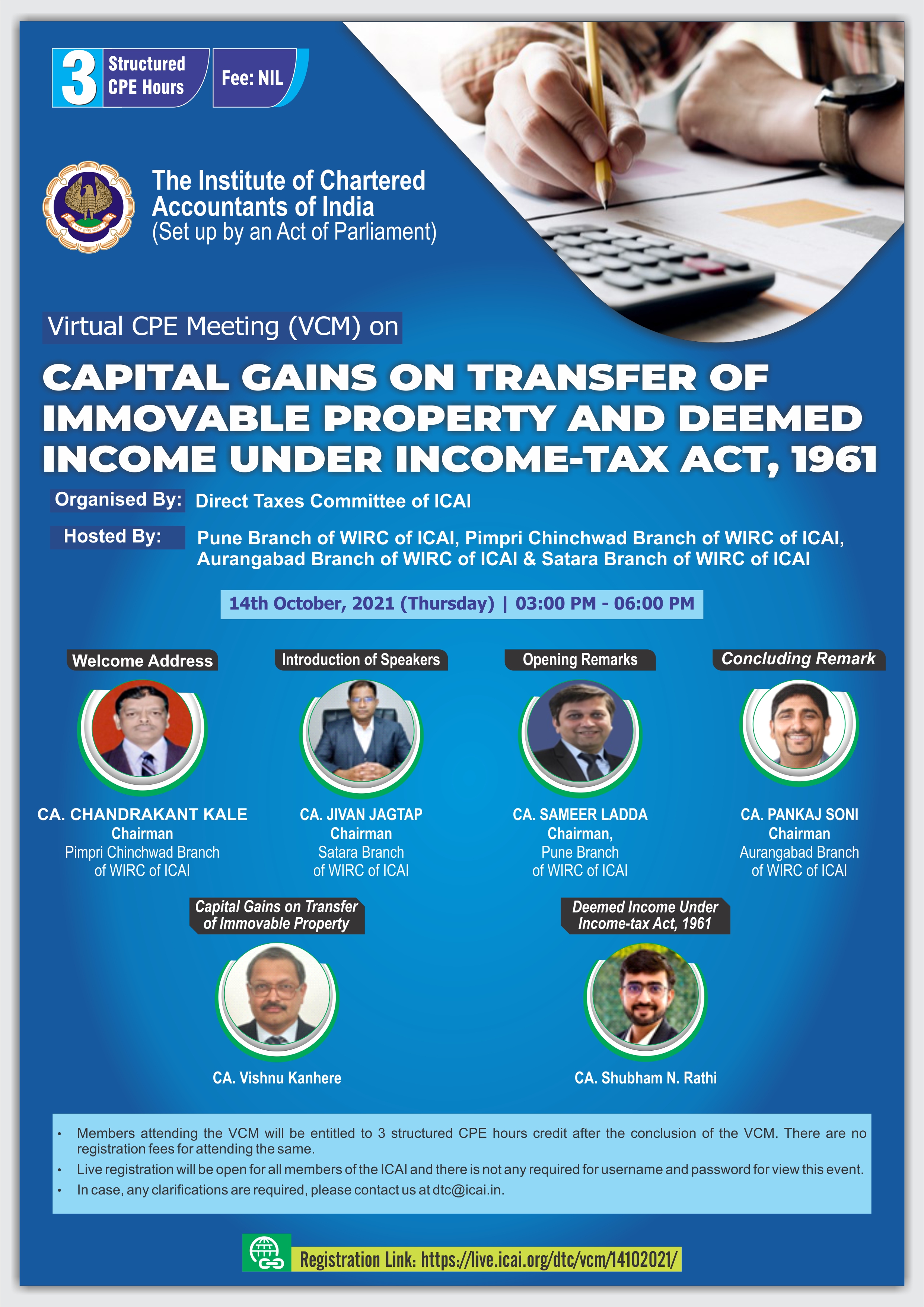 Virtual CPE Meeting (VCM) on "Capital Gains on Transfer of Immovable Property and Deemed Income Under Income-tax Act, 1961"