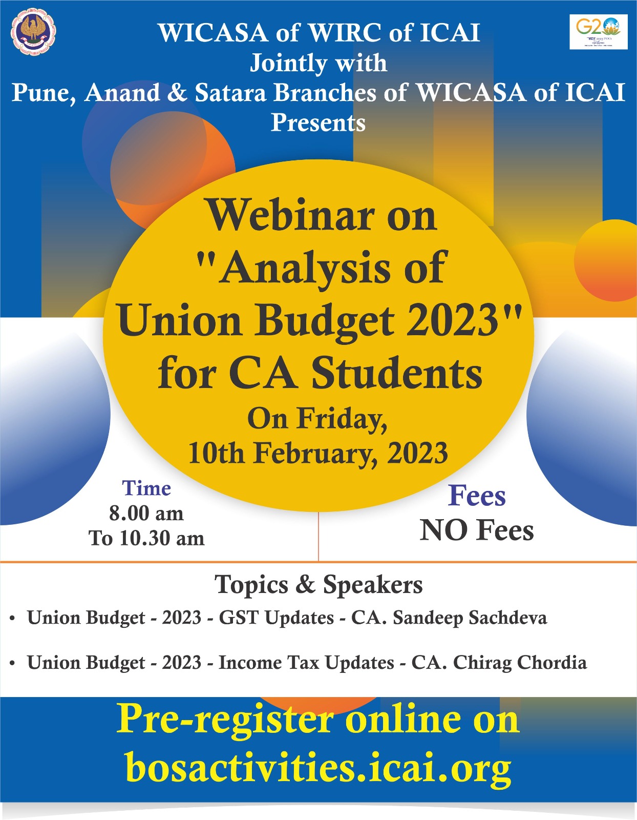 Webinar on "Analysis of Union Budget-2023" for CA Students